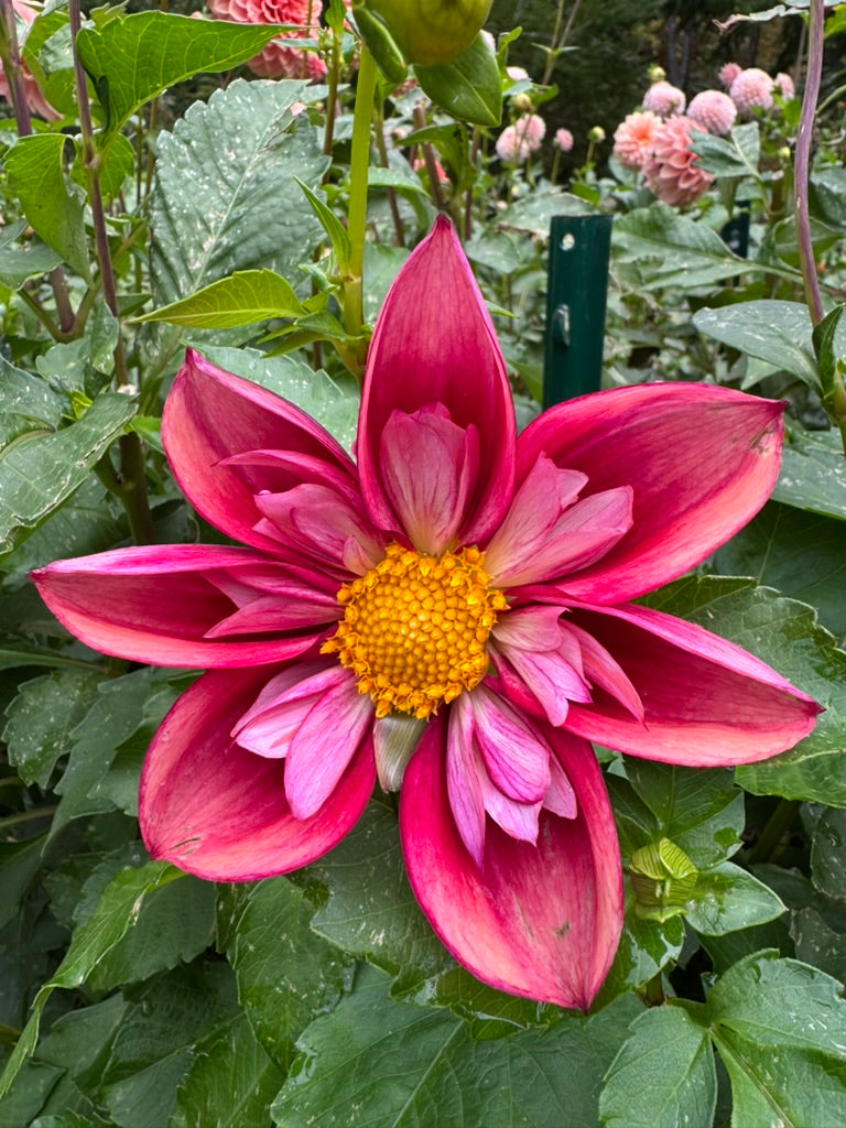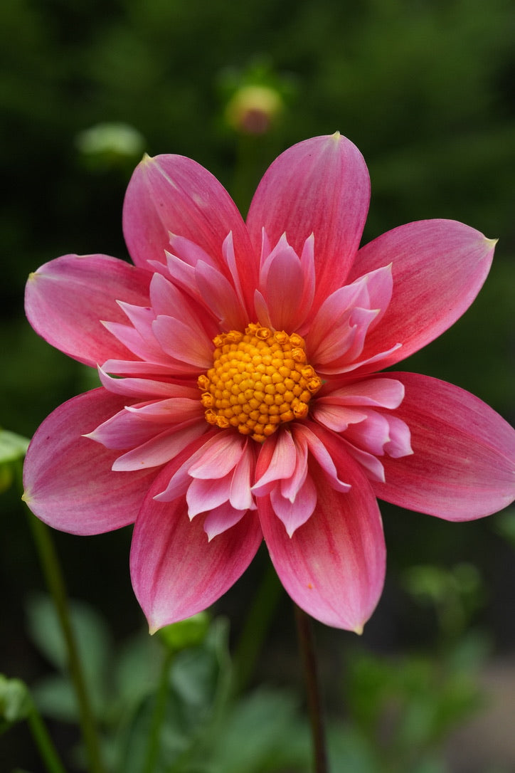 Bloomquist Simple is a coral pink collarette with multiple front petals creating a cute fluffy center in a lighter pink around the middle of the dahlia. This coral pink screams "summer!" and is a perfect addition to any summer arrangement.