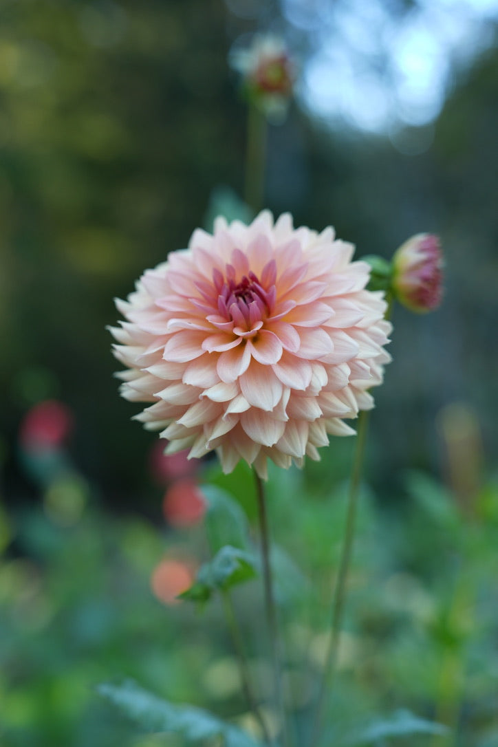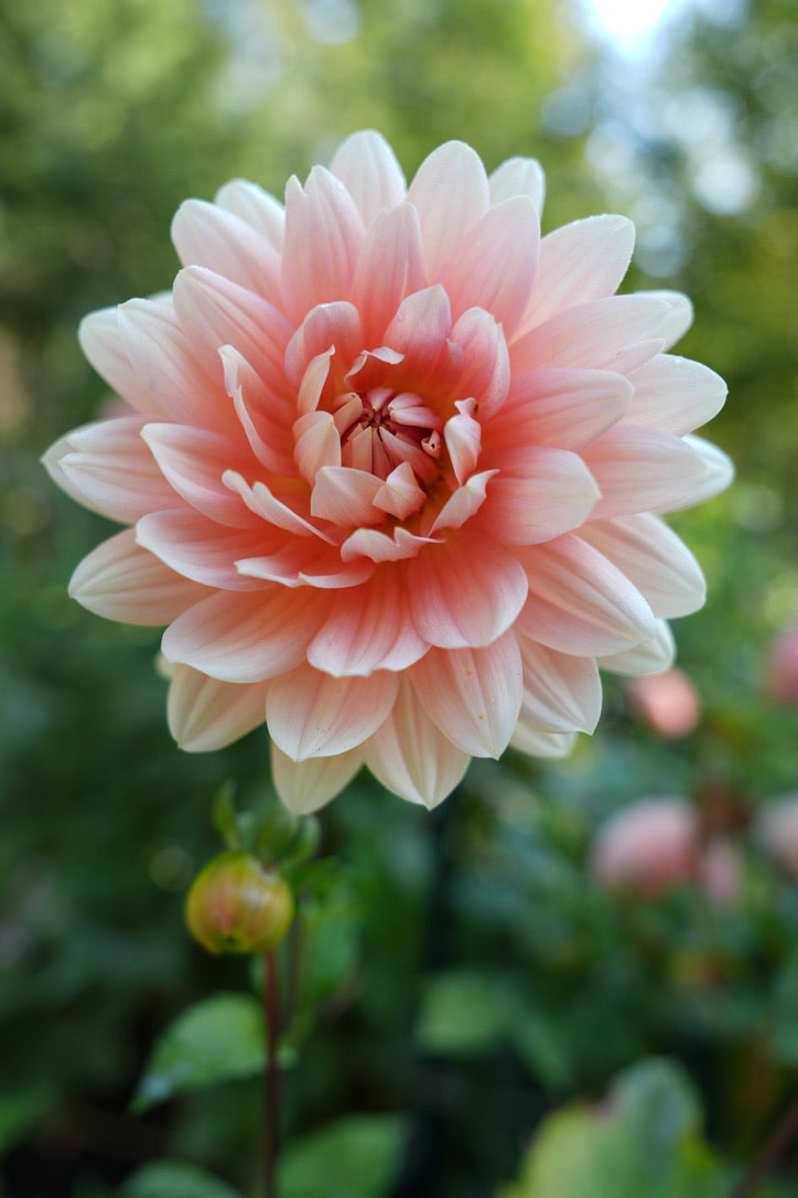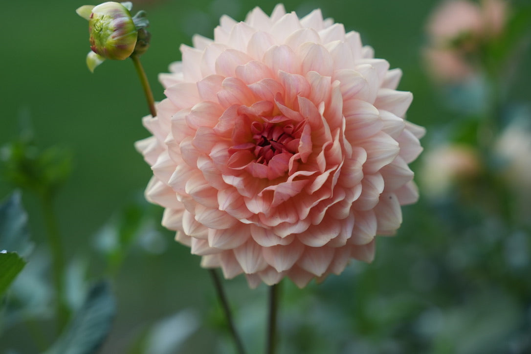 Fawn is a soft, romantic bloom with petals that shift from peach to apricot to blush pink. This variety is a waterlily dahlia, known for its flat, layered form and elegant silhouette. As the day fades, the petals gently fold inward in the evening, adding to its delicate, almost poetic charm.