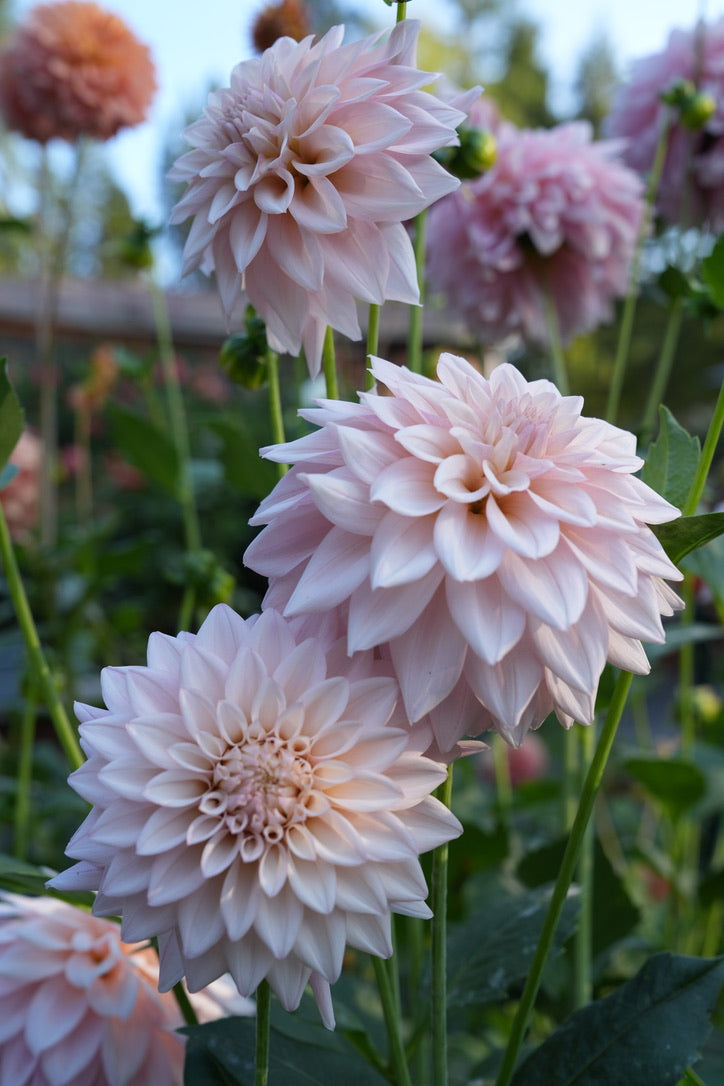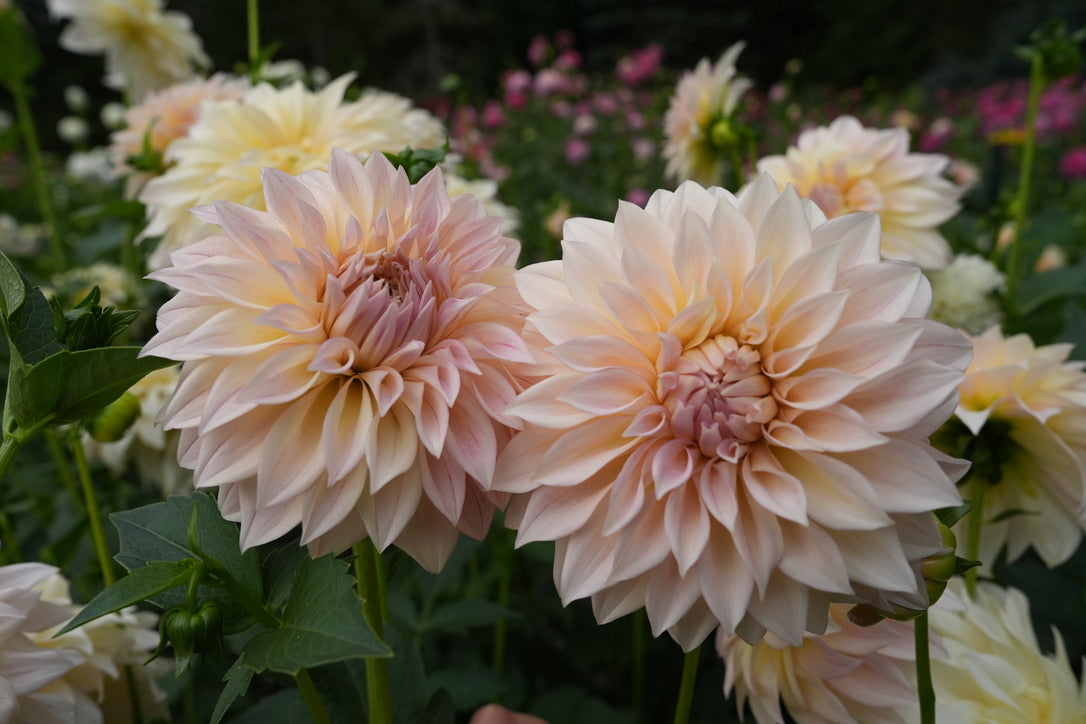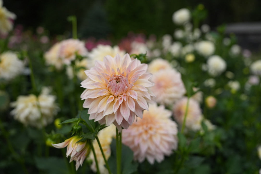 KA’s® Mocha Maya bred by Kristine Albrecht of Santa Cruz Dahlias, is a stunning late-blooming dahlia with creamy blush petals that fade from cream to soft pink. Its gentle tones and ideal bloom size make it a must-grow for weddings, bridal bouquets, and arrangements, carrying beauty through the end of the season.