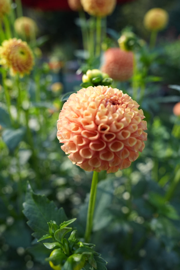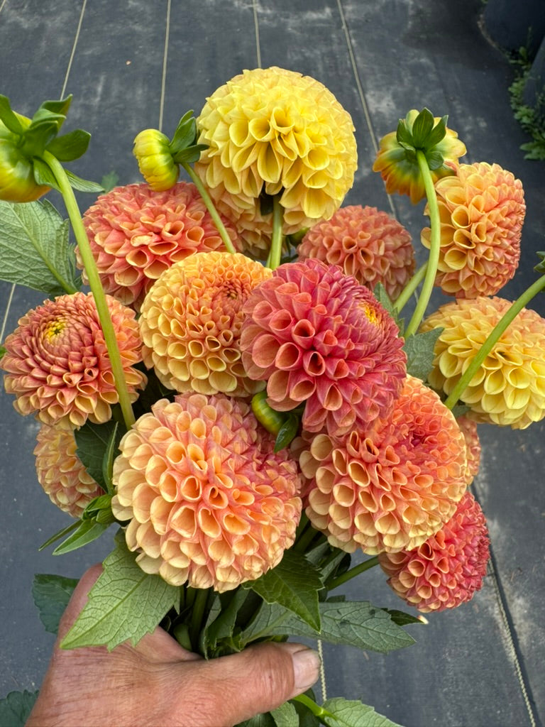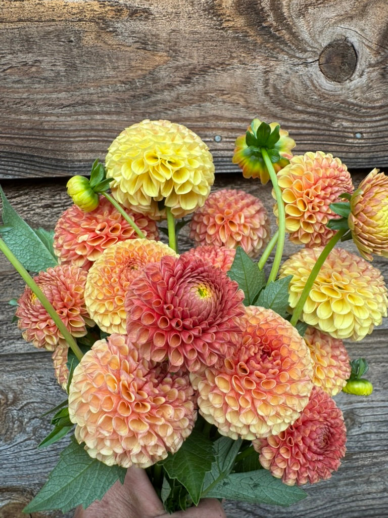 Tiny is a striking pompon dahlia with bright orange petals and a red reverse. Each bloom boasts perfect form, with tight cup-like petals. This dahlia is highly productive and a reliable seed producer.